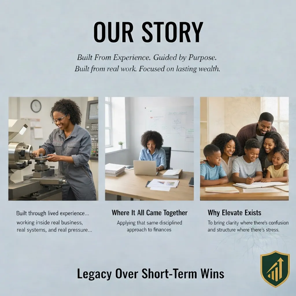 I’m building Elevate with a clear vision: to create stability and generational wealth for my family, and to help others do the same. That means looking beyond this tax season or this year’s numbers. It means building financial systems that hold under pressure, adapt as life changes, and support the next generation with clarity and control.